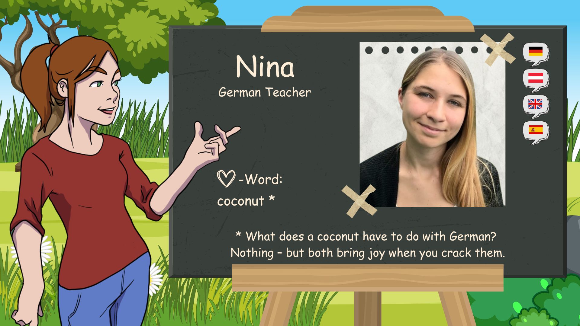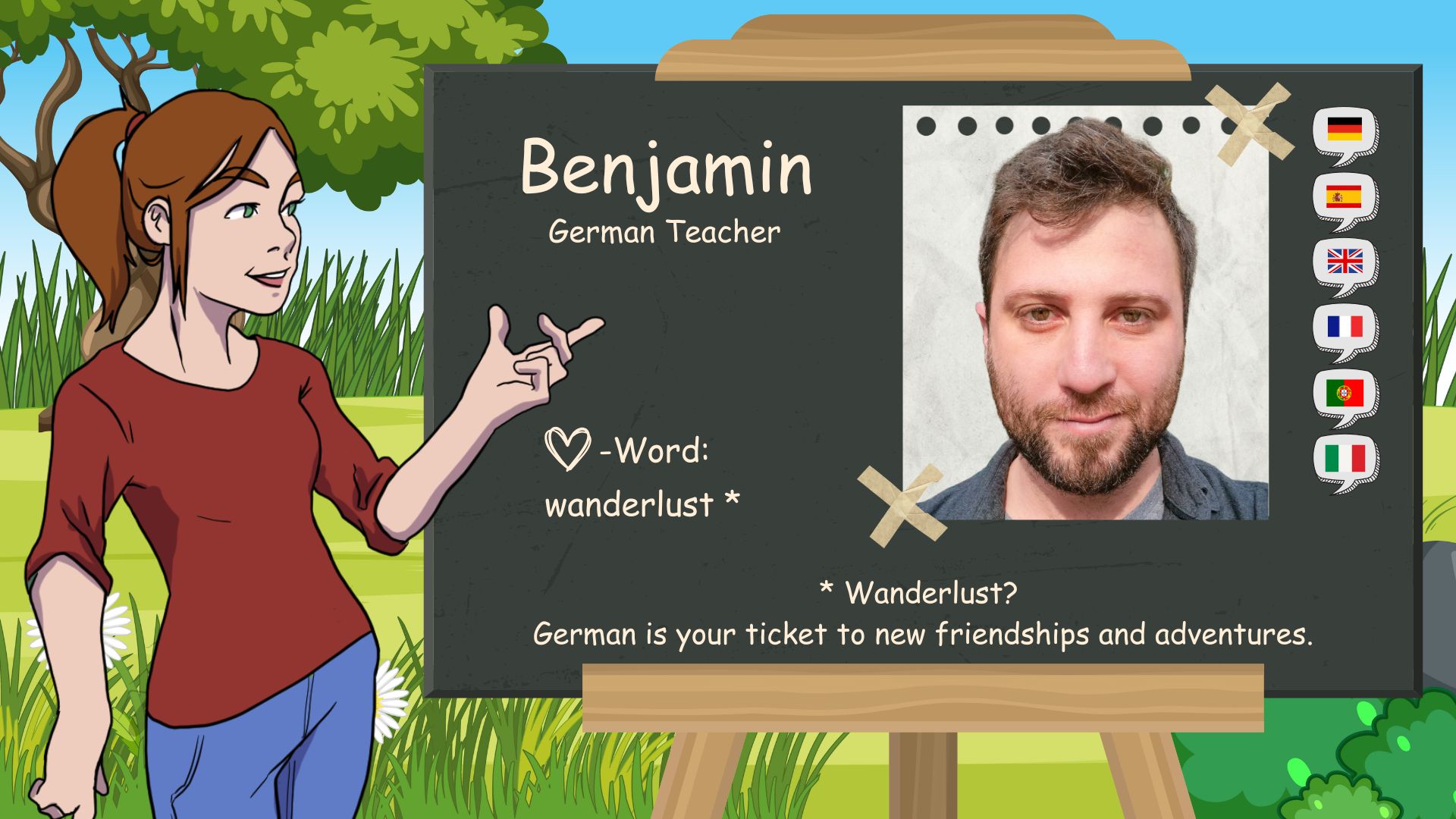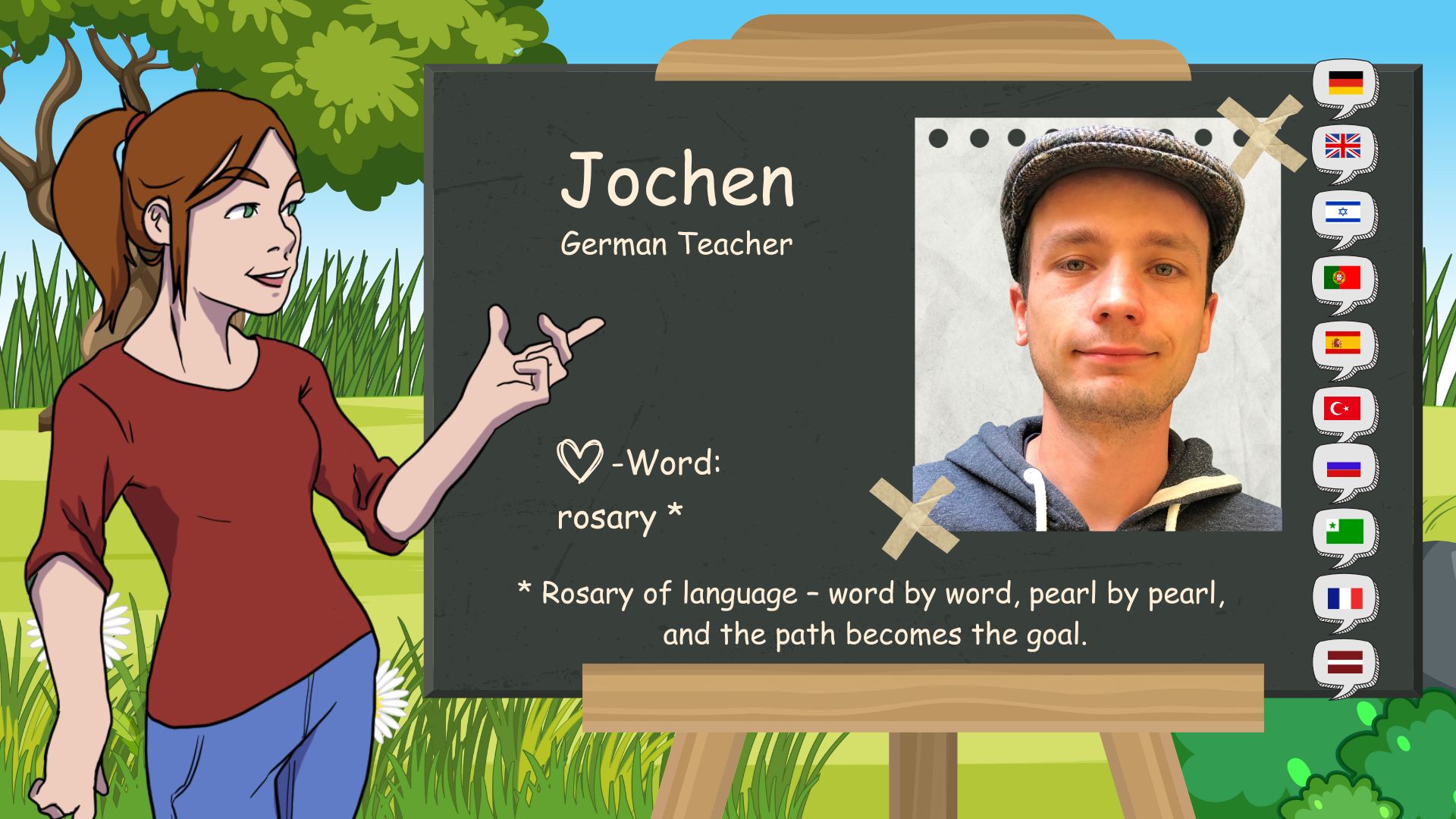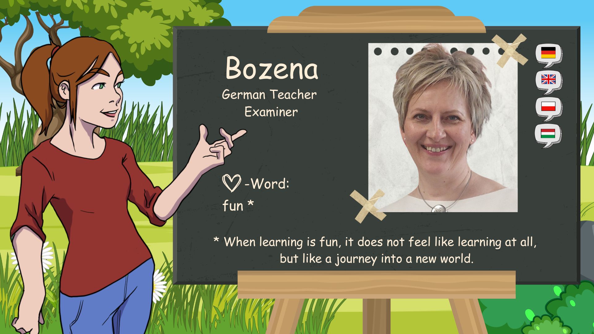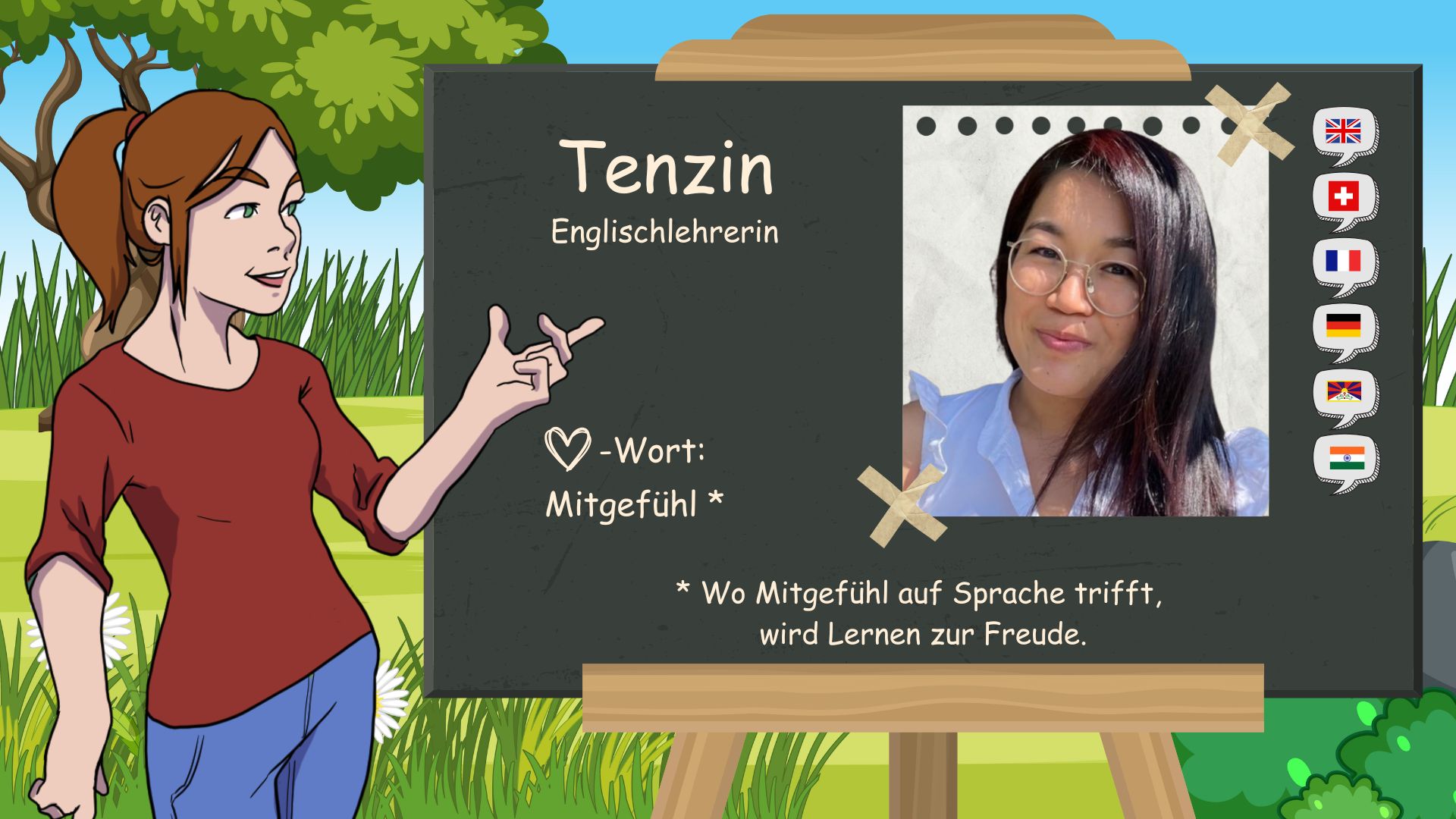 The “D” in D-SCHULE stands for “German ‘ and ’Domenika”. I was born here in Baar, Switzerland, on May 1, 1983. I have been fascinated by languages since I was a child. At home, my younger brother and I grew up bilingual. German and Czech. At school I learned French and English.